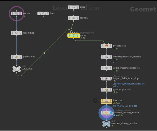 This flipbook is using a curve to control a popnet that is driving my pyro source.